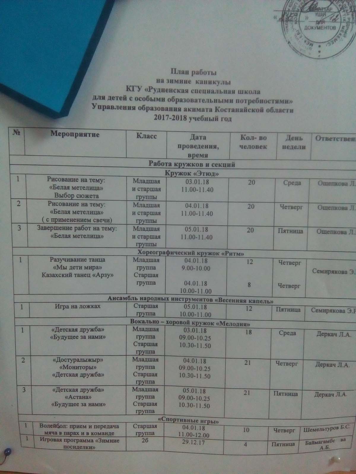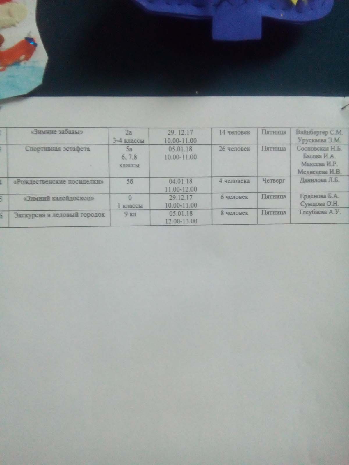 Информация о зимних каникулах