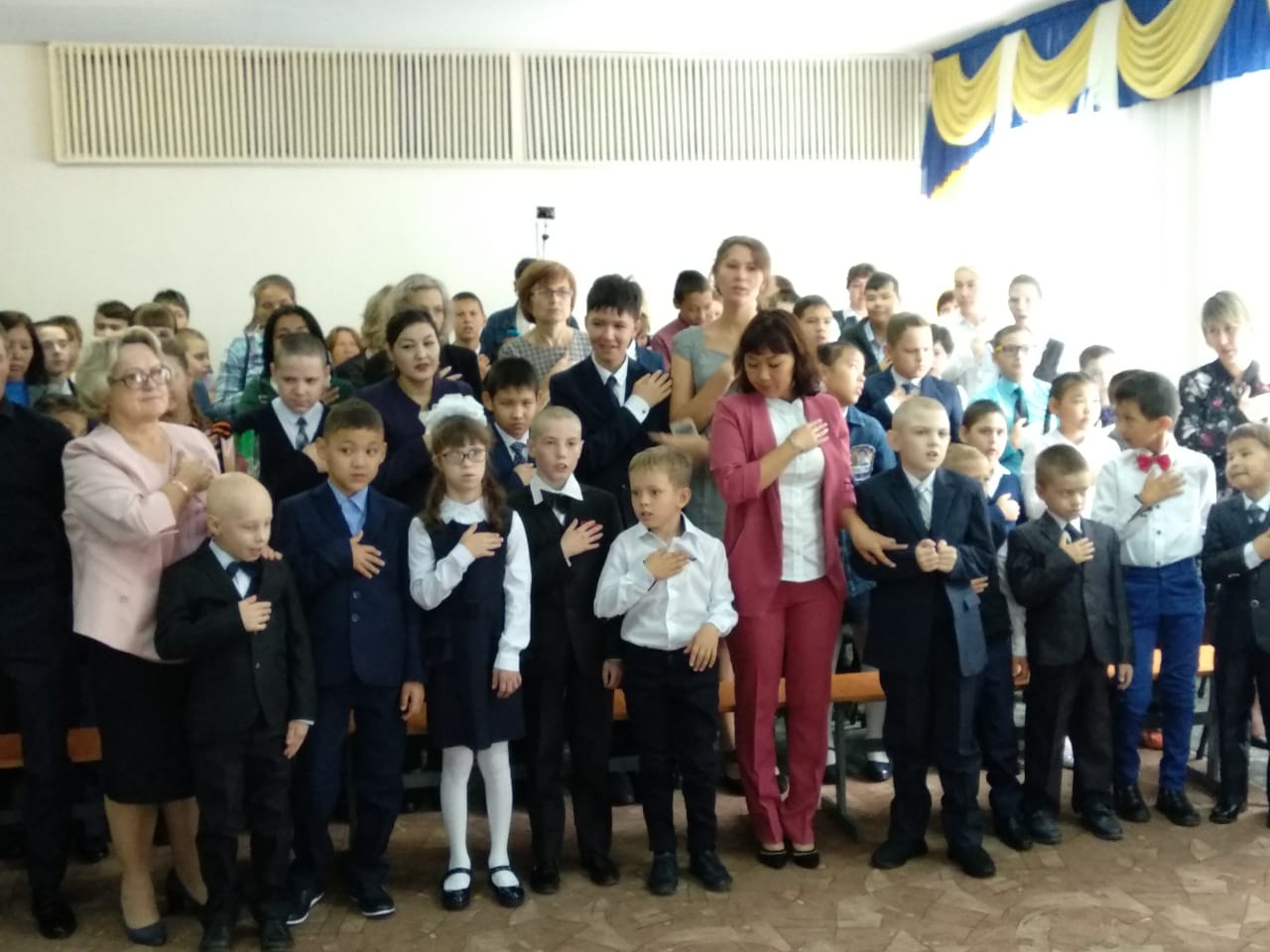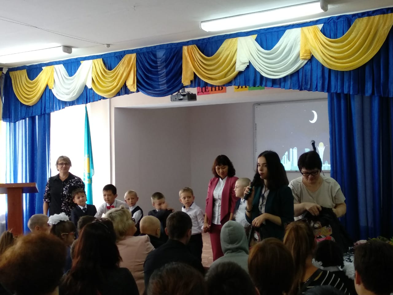 1 сентября, в День Знаний, в школе состоялась торжественная общешкольная линейка Саналыұрпақ — жарқынболашақ.