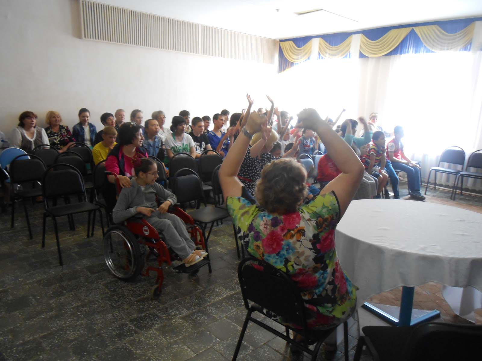 В заключении состоялся концерт с просмотром вокальных и танцевальных номеров на колясках.