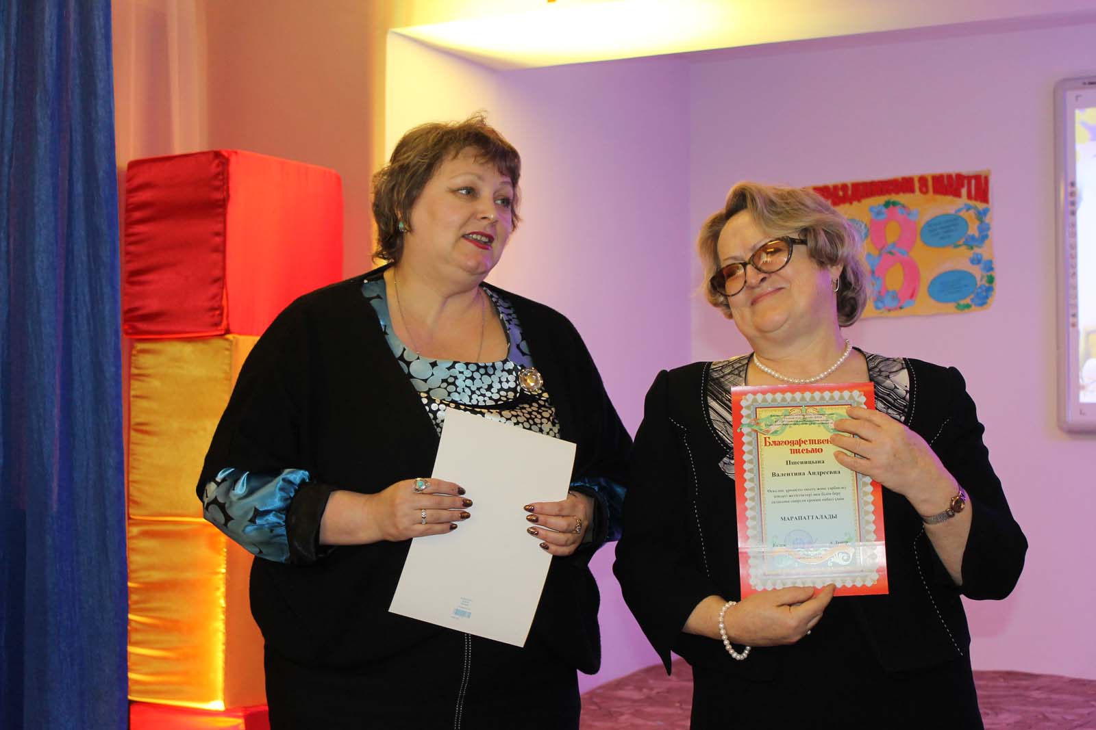 За особые заслуги в обучении и воспитании детей с особыми образовательными потребностями была награждена грамотой акима области — Дайкер А.А.,директор школы; награждены благодарственными письмами: Пшеницына В.А., учитель-логопед, председатель профсоюзного комитета, Султангазина Г.С., учитель казахского языка, Сосновская Н.Б., учитель географии