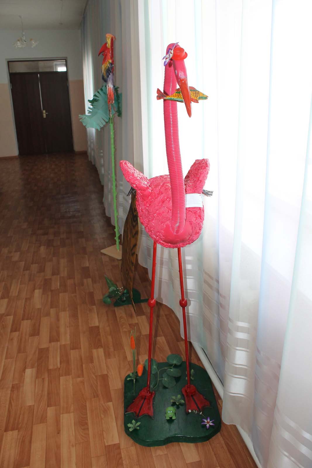 На выставке представлены макеты, выполненные из природного материала. Особого внимания заслуживают работы Кравченко Антона, Сисолятина Андрея, Кажымуханова Нурболата.